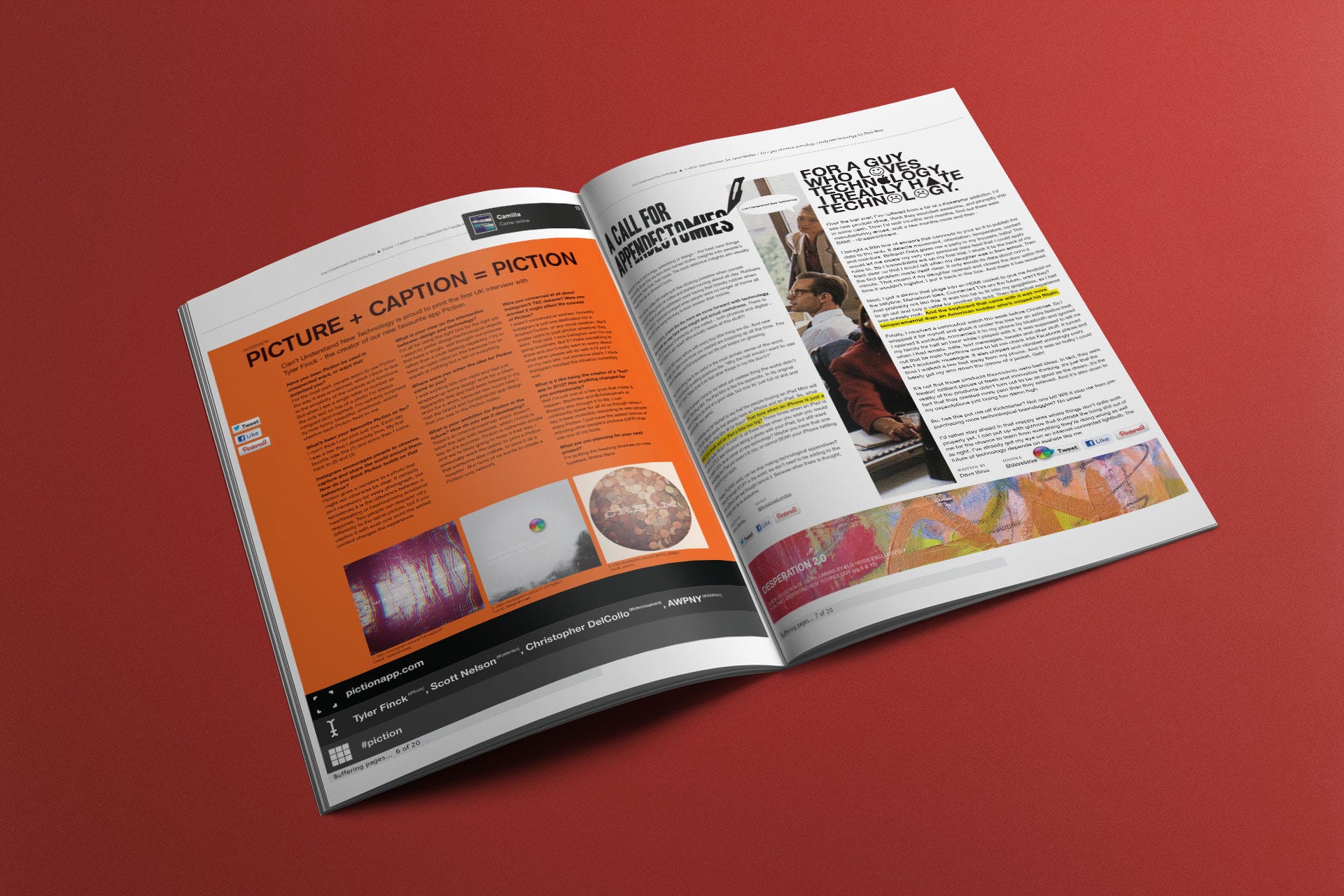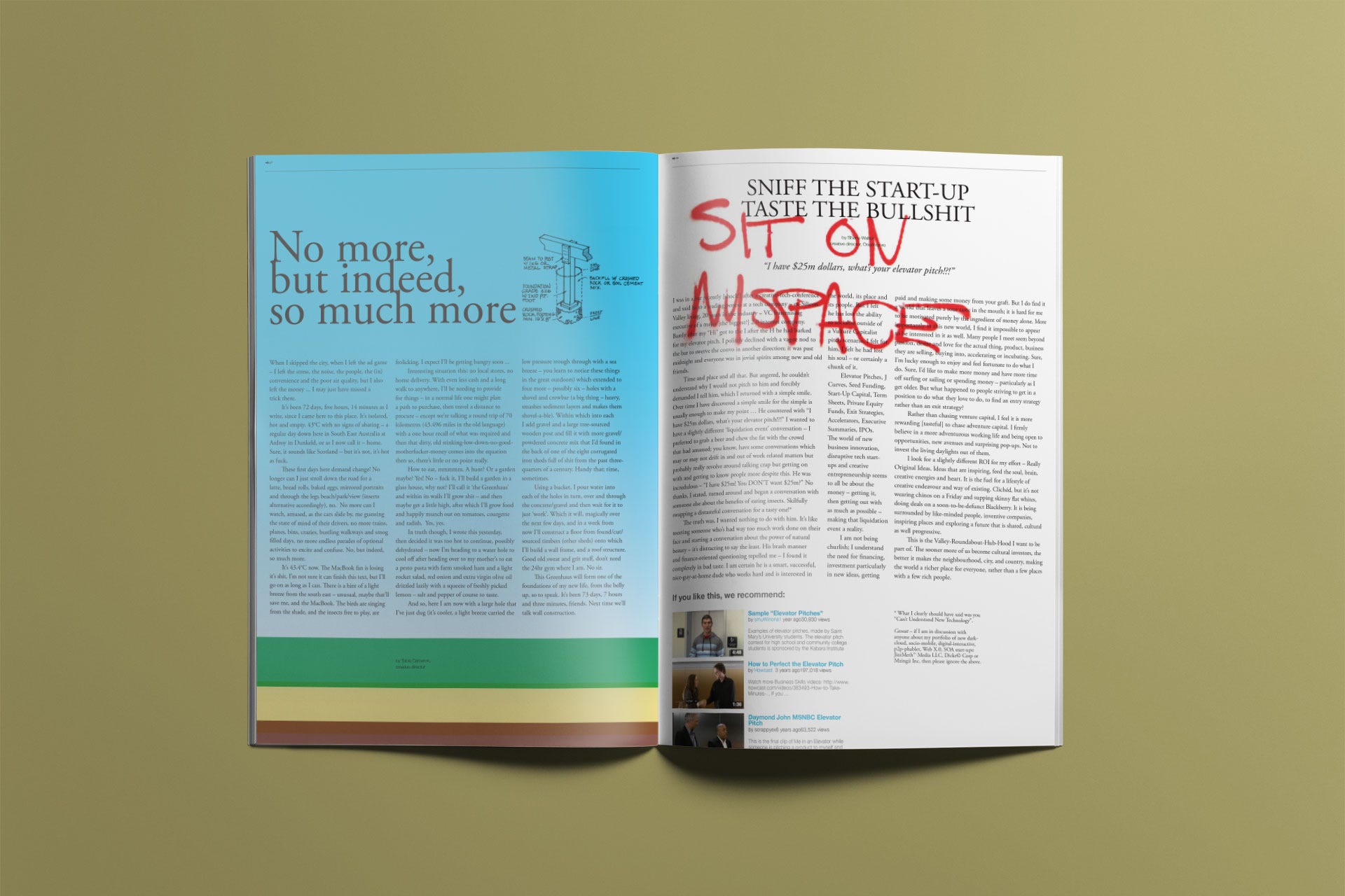 For our first issue we approached about 20 potential contributors, describing our idea as a “digest of work, news, views and egos". And, with a bit of cat herding, we got some incredible, weird and wonky contributions back. Simon Manchipp wrote about up-voting brand assets, Glyn Britton asked whether agencies can make products, Steve scored an exclusive interview with the founder of LostMyName (now Wonderbly) and Flo Heiss got out his oil paints. While I began editing, Steve cracked on with the overall design of the issue.
